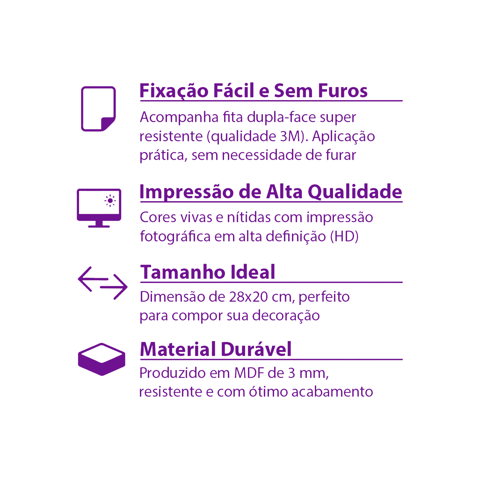 Produzido em Papel Fotográfico de alta qualidade, com impressão nítida, durável e resistente.